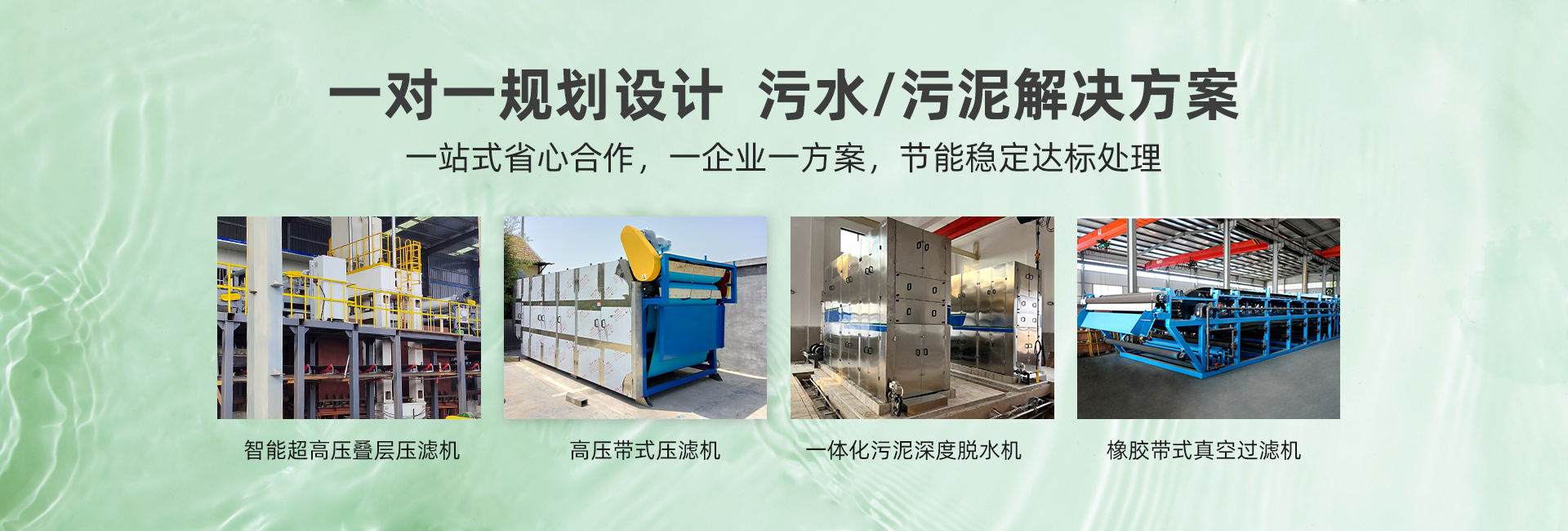 主營(yíng)產(chǎn)品:超高壓疊層壓濾機(jī)、高壓帶式壓濾機(jī)、橡膠帶式真空過(guò)濾機(jī) 、帶式濃縮脫水一體機(jī)、帶式壓濾機(jī)、一體式污泥深度脫水機(jī)、帶式果汁壓榨機(jī)、疊螺式污泥脫水機(jī)、轉(zhuǎn)鼓式濃縮脫水一體機(jī)、刮吸泥機(jī)、一體化污水處理設(shè)備、氣浮機(jī)、加藥裝置、輸送機(jī)、污泥料倉(cāng)等設(shè)備。產(chǎn)品廣泛應(yīng)用于市政污水、工業(yè)廢水、食品與飲料、畜牧養(yǎng)殖、礦山、化工、造紙、制藥等領(lǐng)域。